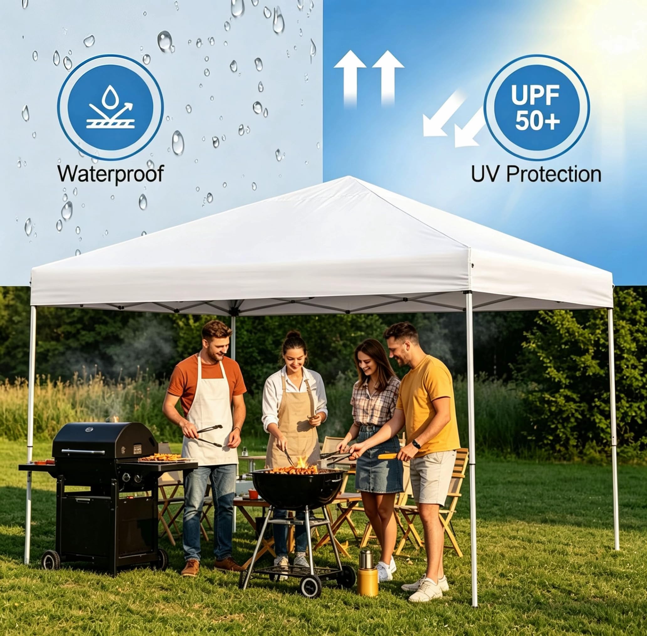 - Waterproof and UV Resistant: The 210D oxford fabric canopy top is water resistant and offers UV protection and avoid discomfort from the sun. High grade corrosion resistant steel truss support frame and straight legs built to long can handle wind, rain and sun