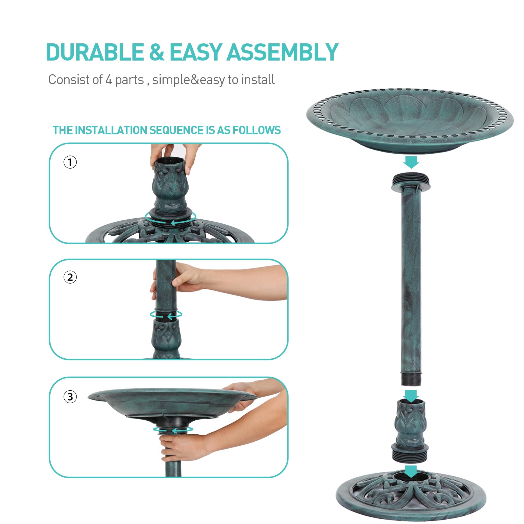 ZENY 28 Inch Height Polyresin Bird Bath Antique Outdoor Garden Decor Vintage Yard Art, Greenâ