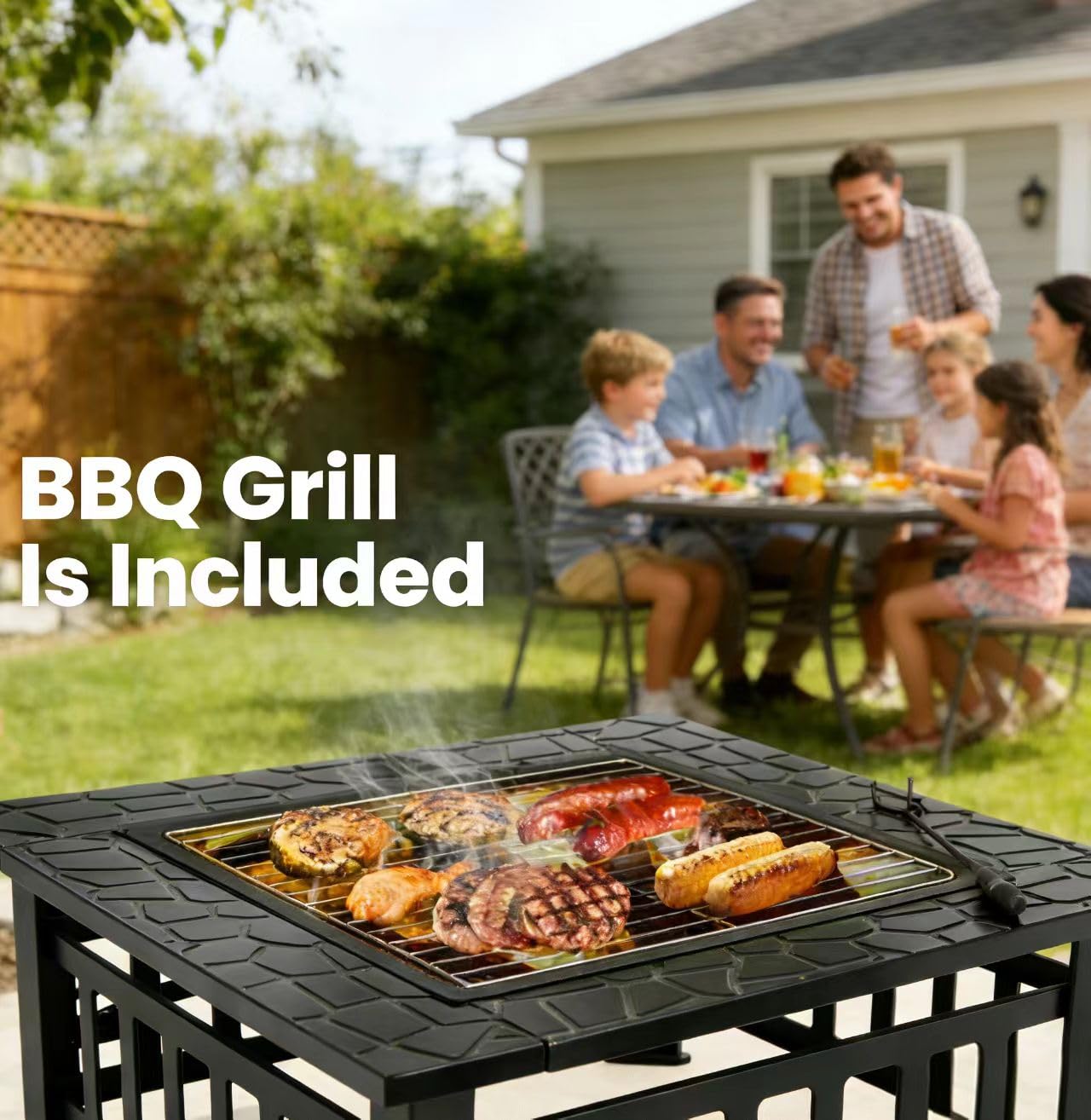 - Multipurpose Fire Pit:This 3 in 1 portable fire pit can not only offer warmth,but also can be used for BBQ and cooling drinks and food.The BBQ shelf in the pictures is included