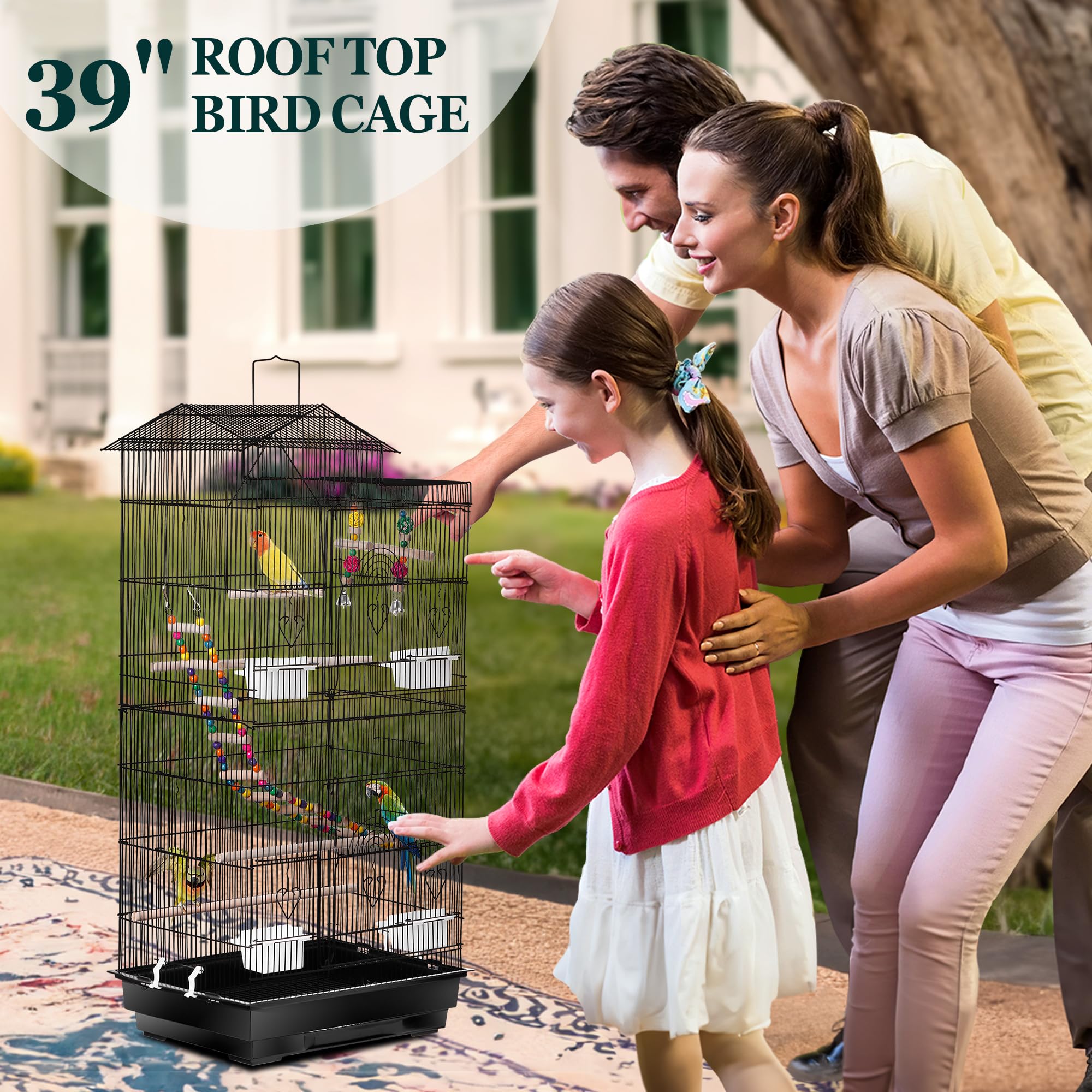 ZENY 39-inch Roof Top Large Flight Parrot Bird Cage for Small Quaker Cockatiel Canary Sun Parakeet Green Cheek Finch Budgie Lovebirds Wrought Iron Pet Bird Cage w/Toys