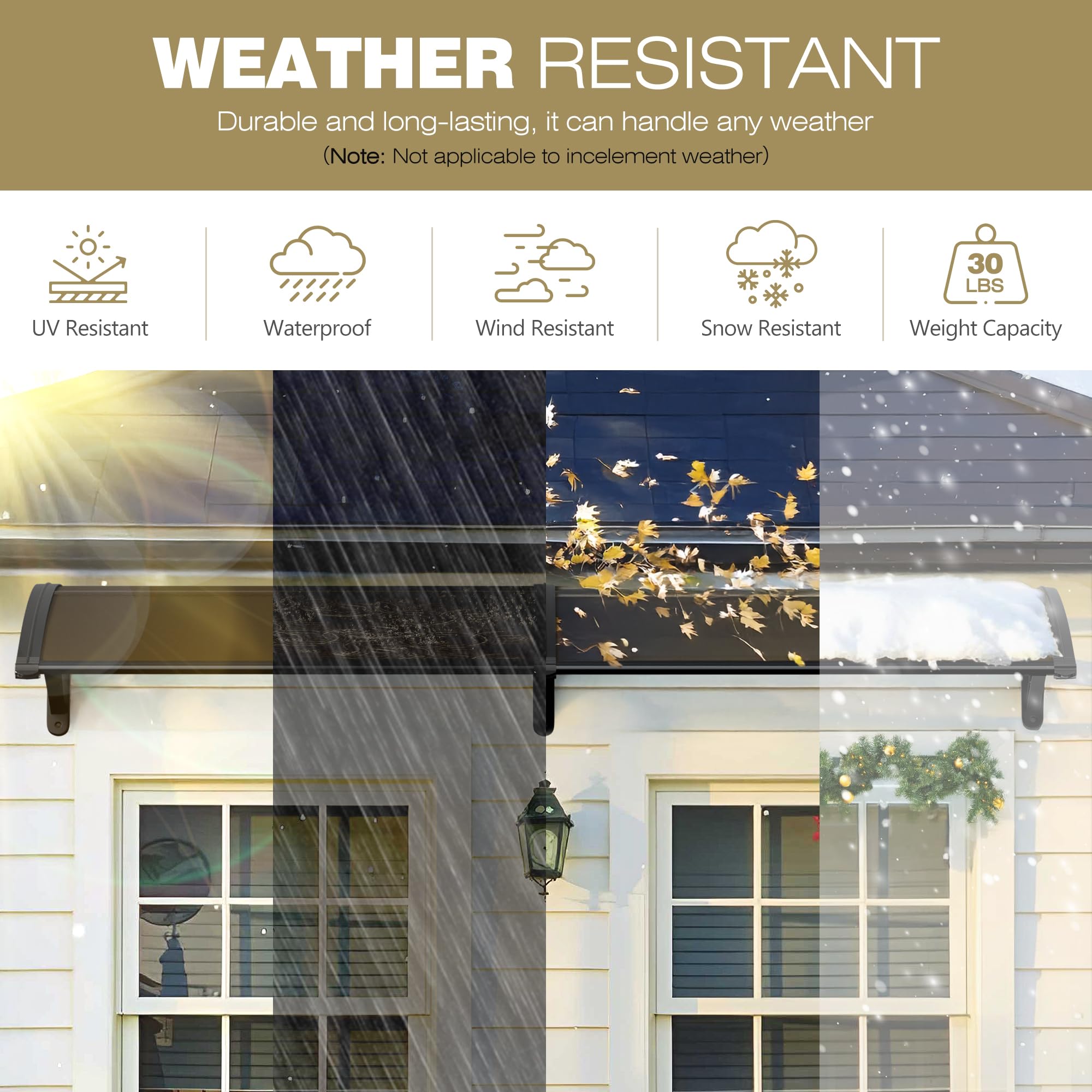 - Versatile Design: The rain door protector fetureing arched shape allows for optimal coverage and clearance over entryways or windows up to 80 inches wide, effectively block UV rays and are designed to withstand wind, rain, and snow.