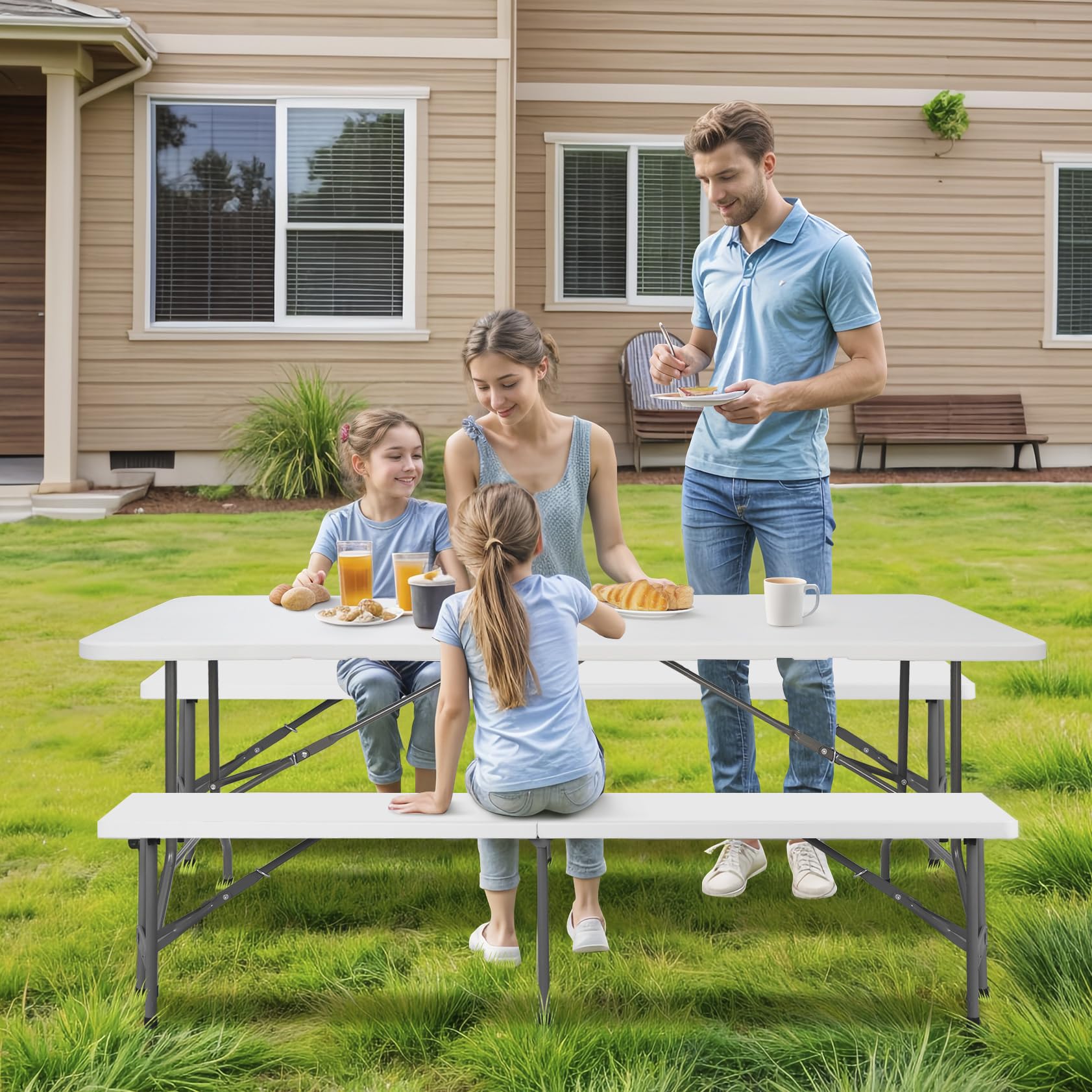 ZENY 6 Feet Picnic Table Set with 2 Benches, 3-Piece Camping Table Chair Set for Dining, Party, Garden, White