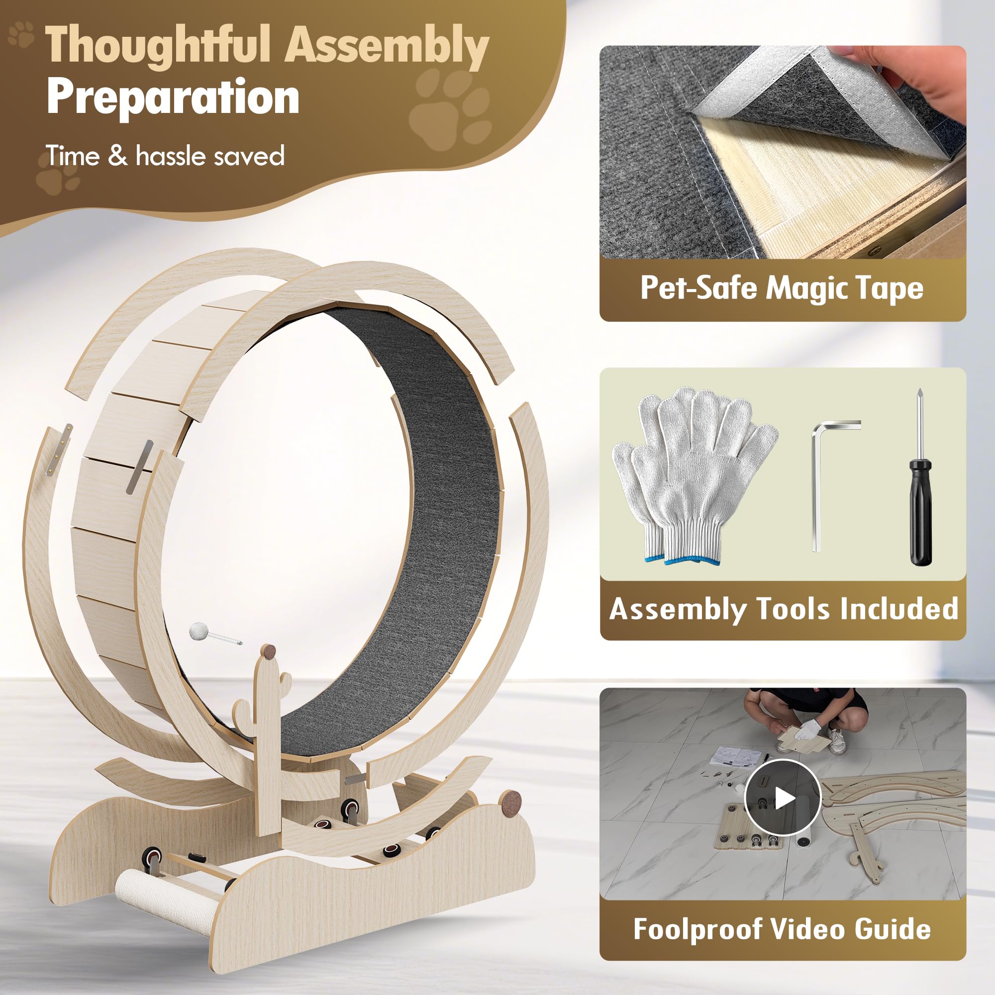 - ăCat Exercise Wheel for Indooră47-inch diameter cat ecxercise wheel provides spacious running area for cats of all sizes and breeds, perfect for indoor exercise and activity