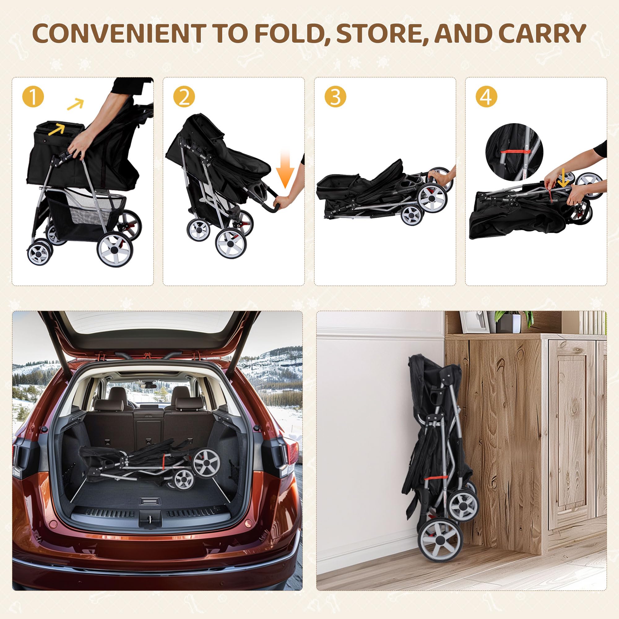 ZENY Foldable Pet Stroller, Cat/Dog Stroller with 4 Wheel, Pet Travel Carrier Strolling Cart with Storage Basket, Cup Holder (Black)
