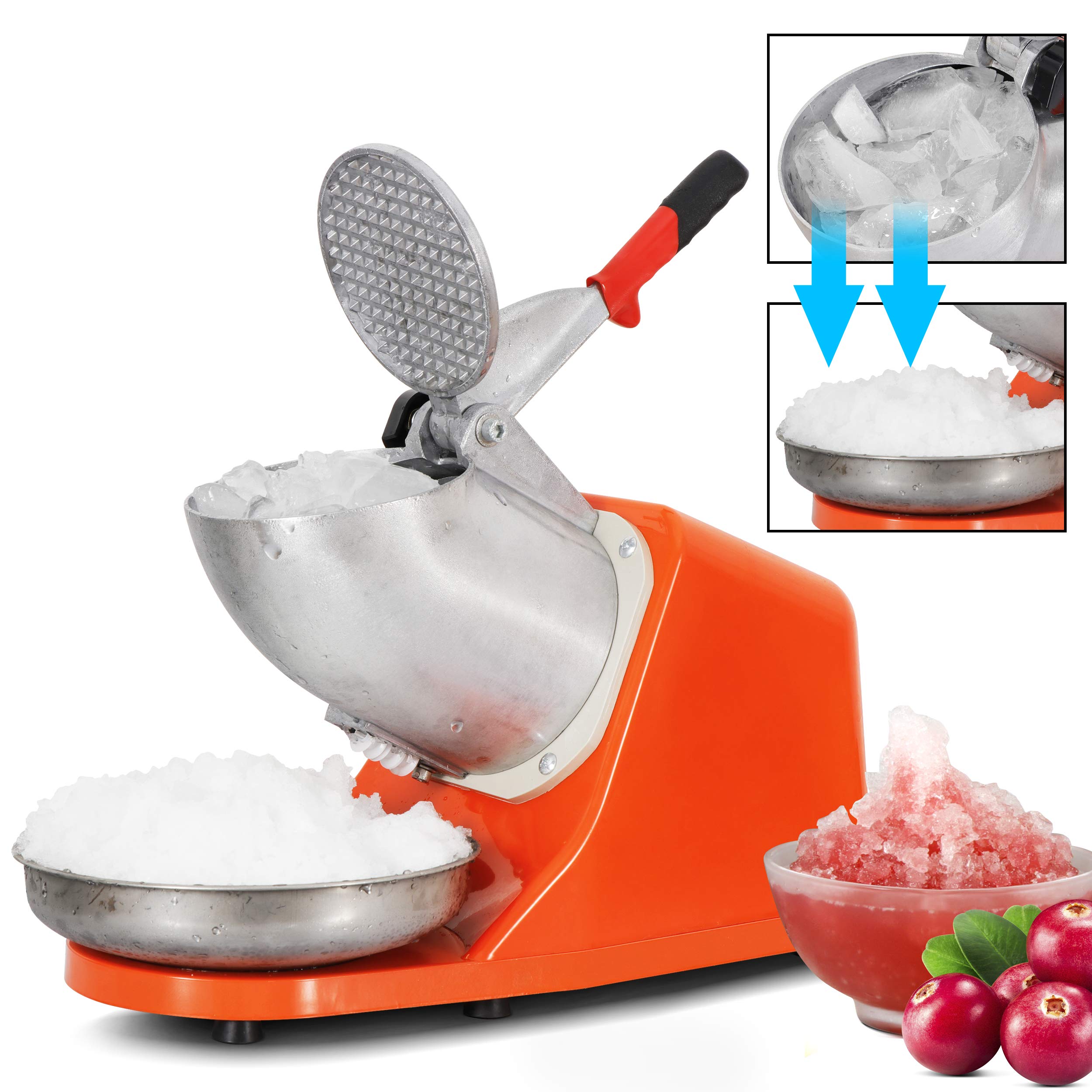 ZENY Ice Crushers Machine Electric Snow Cone Maker Stainless Steel Shaved Ice Machine (Orange)