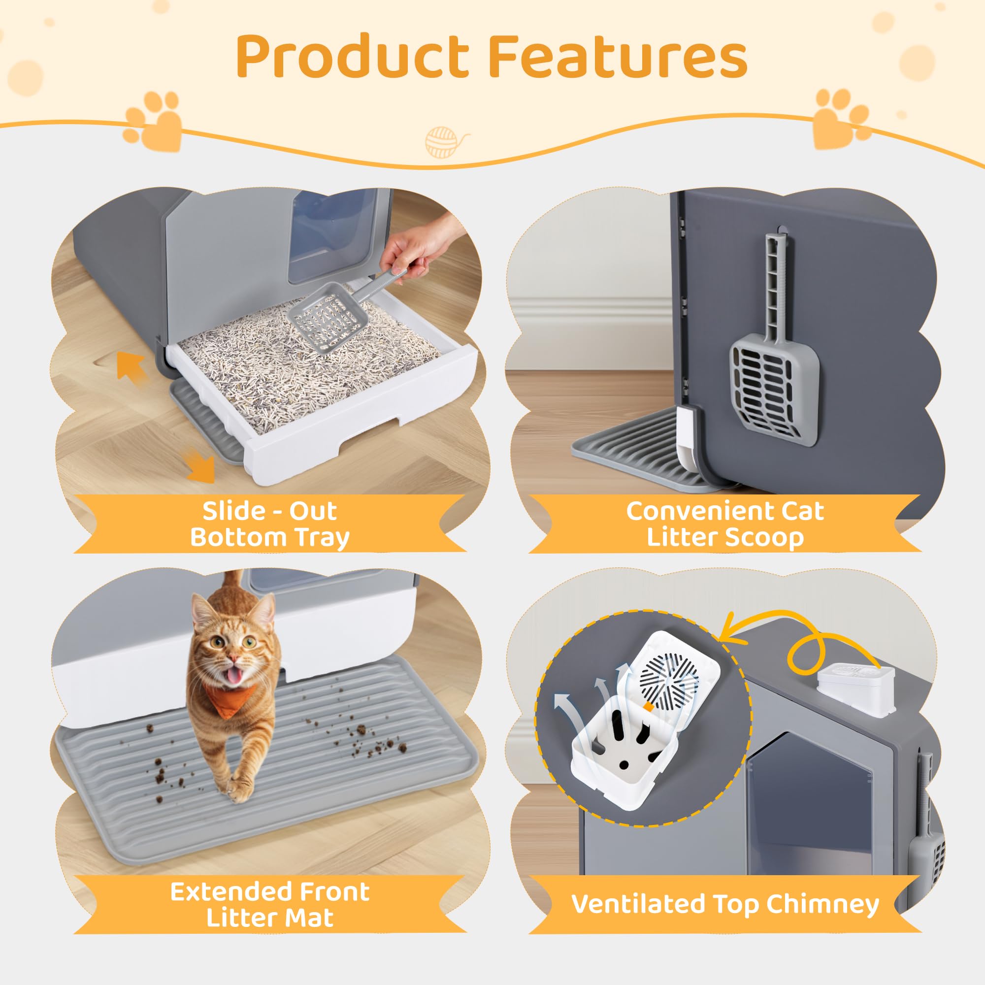 - ăEasy Cleaning ă- The cat litter box features a drawer design and comes with a litter scoop. When it's time to clean, simply pull out the drawer and use the scoop for a hassle-free experience