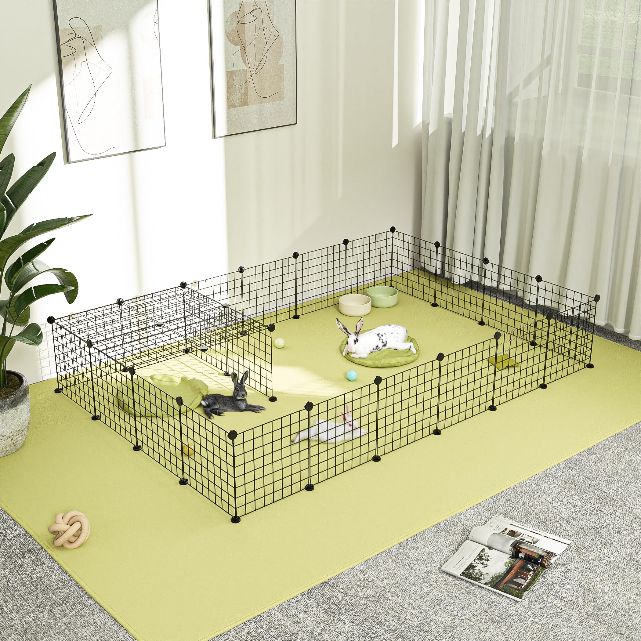 - Easy to Assemble and Storage - This small animals playpen comes with DIY 36 panels make this playpen super easy to set up or take down. Our slotted, multi-angle connectors were made from thickened ABS plastic for long-term use, rounded edges protect animals from injury. The material is durable and eco-friendly. And it is light weight makes it ideal for travel and can be stored and transported with ease