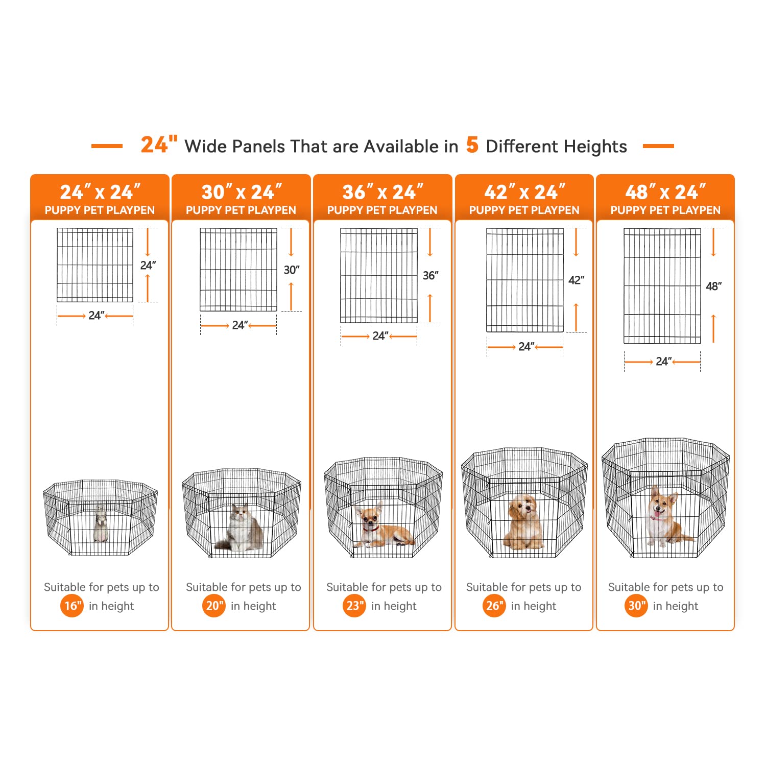 ZENY Puppy Pet Playpen 8 Panel Indoor Outdoor Metal Portable Folding Animal Exercise Dog Fence, 24'' W x 24'' H